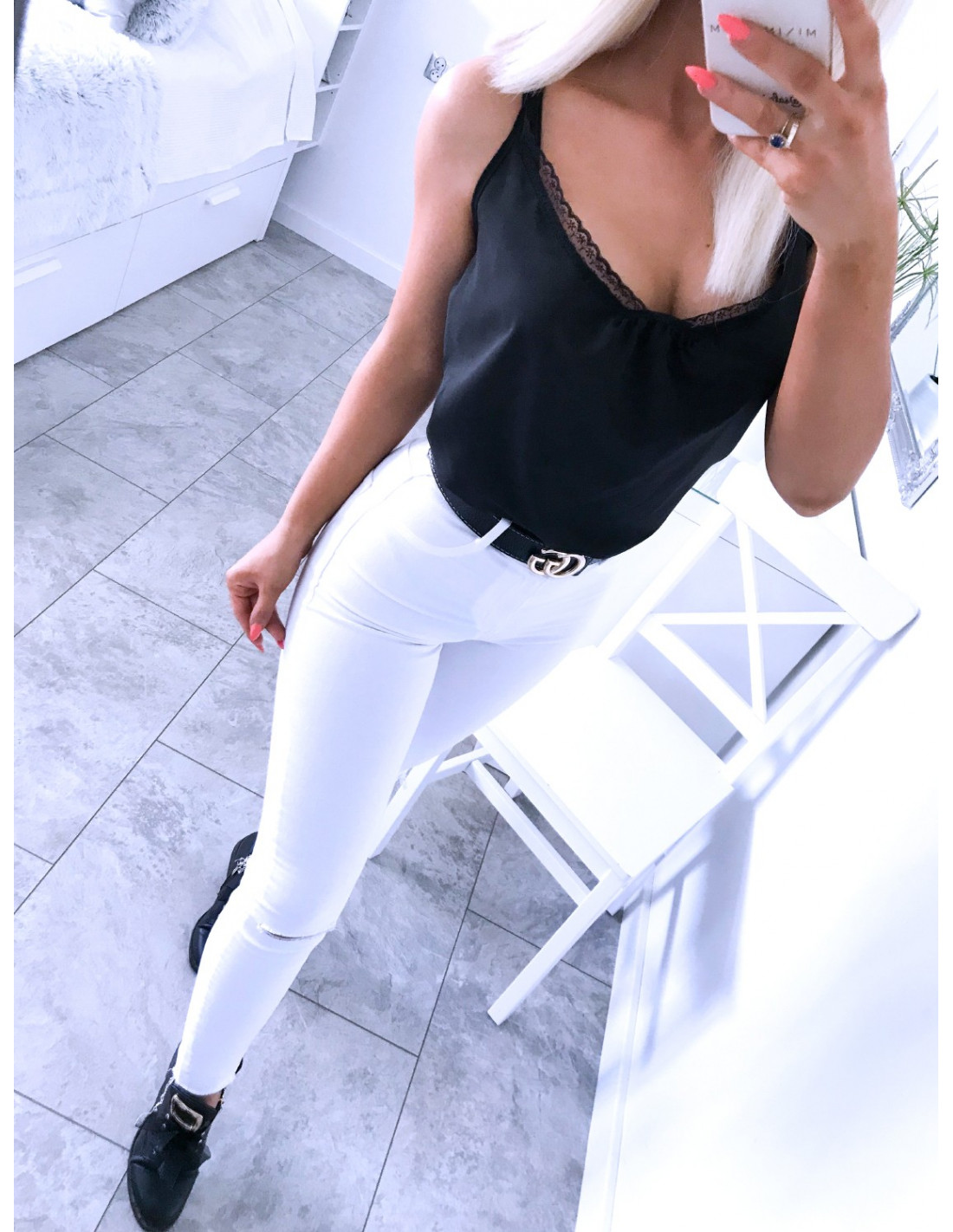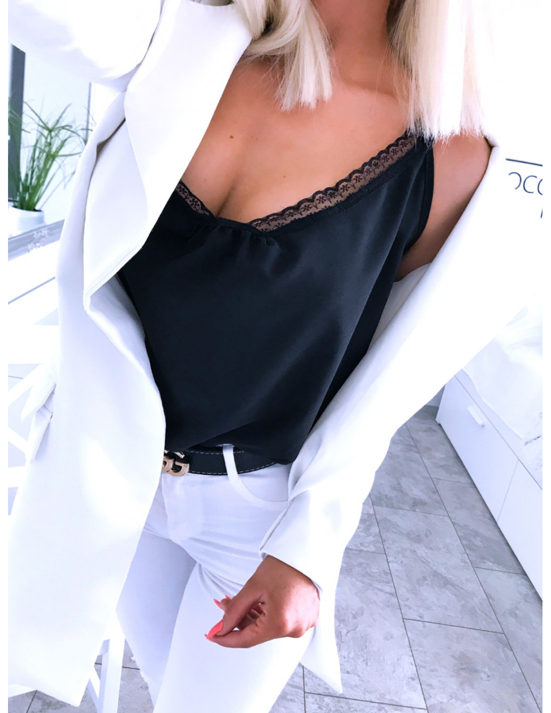 Klasyczna bluzka top z koronką JULIETT - Czerń
