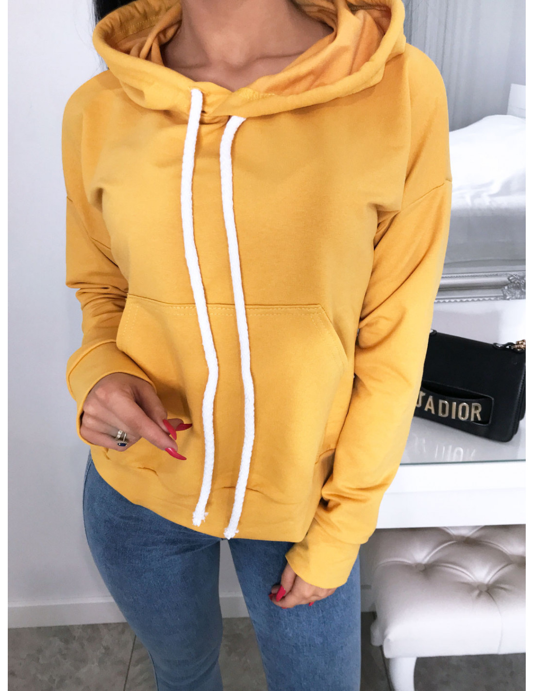 Dresowa sportowa bluza z kapturem LIZA - musztarda