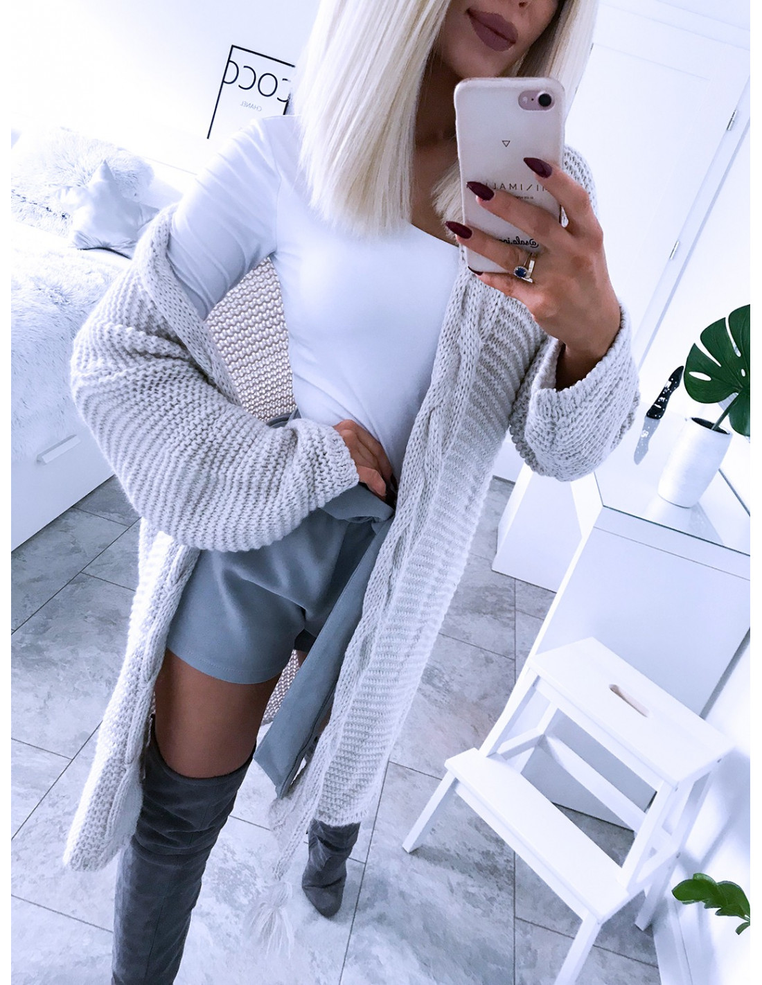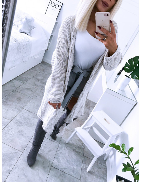 Sweterkowy kardigan TANNA- jasny beż