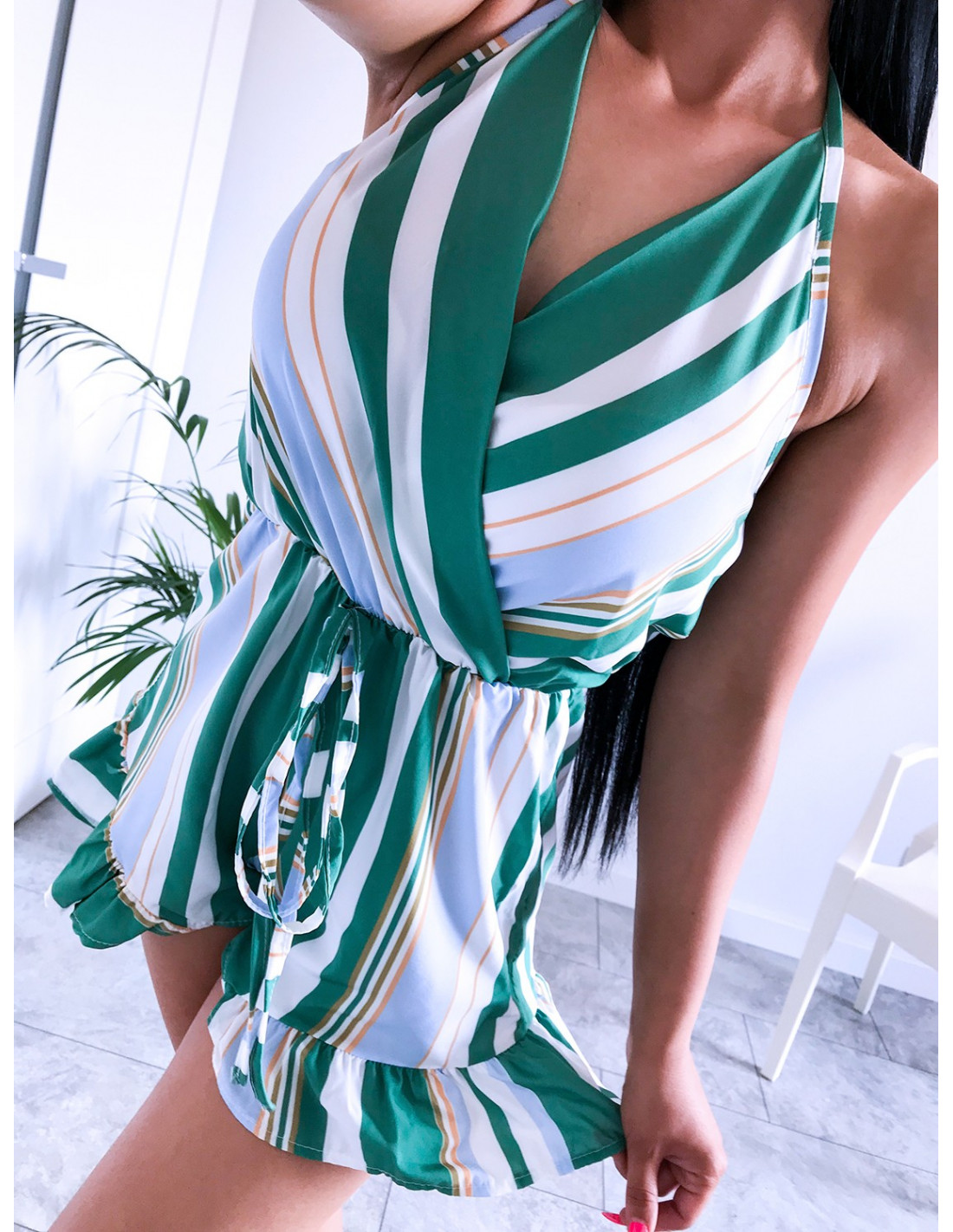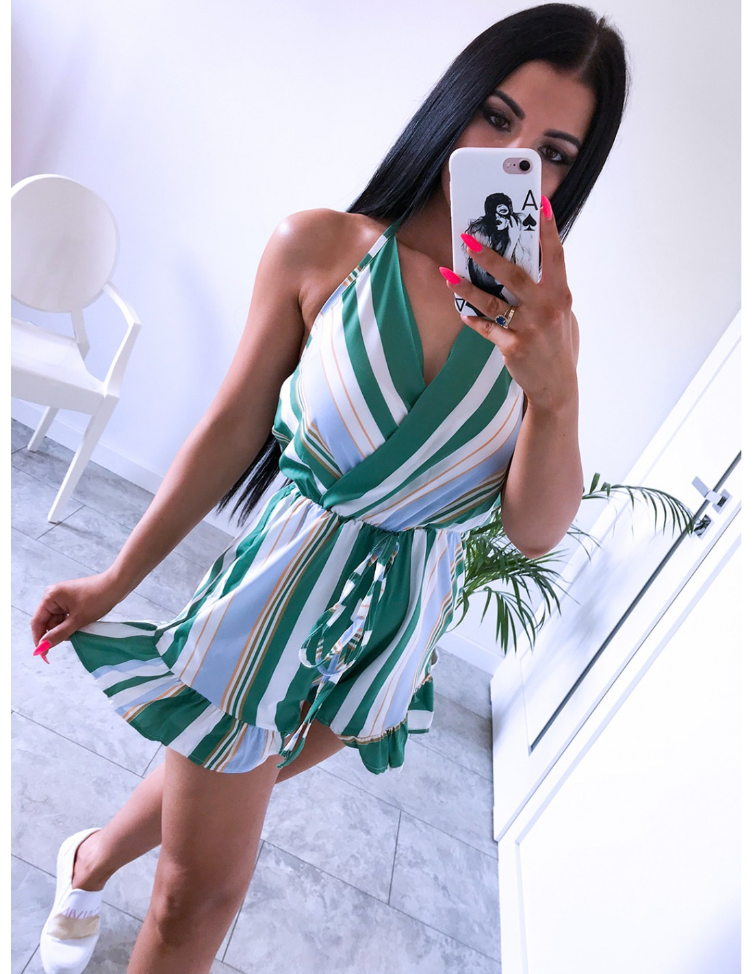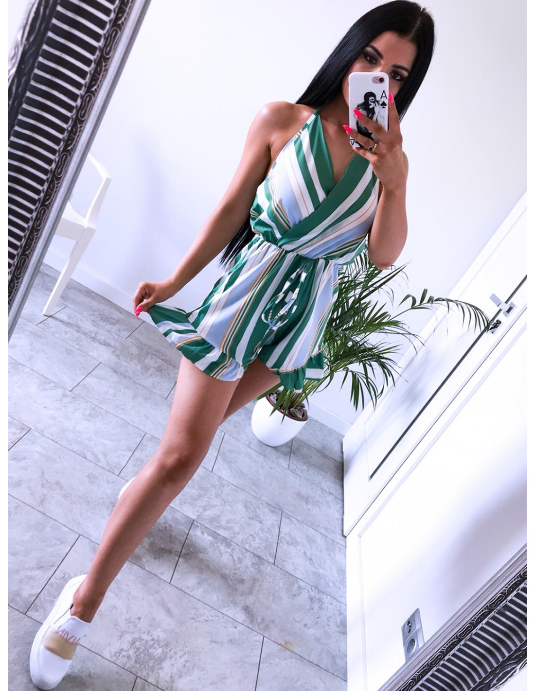 Letni kombinezon Magmac, wykonany został z miękkiego w dotyku materiału, w którego w skład wchodzi 95% poliestru i 5% elastanu. Modny i wygodny kombinezon w paski to świetna stylizacja na lato. Idealny podczas upalnych dni. Zapewni komfort w trakcie noszenia. Drobny prążek nie poszerza, wręcz odwrotnie. Z łatwością ukryje drobne niedoskonałości. O ile w ogóle je masz ;) Gumka w pasie podkreśla talię, a Twoja sylwetka zachowuje kobiece proporcje. Z kombinezonem stworzysz wiele stylizacji. W połączeniu z tenisówkami Twój outfit będzie nie tylko wygodny ale również niebanalny. Na plażę, nad jezioro, na spotkanie z przyjaciółmi- sama zdecyduj!