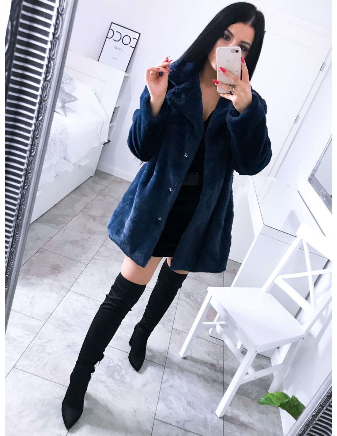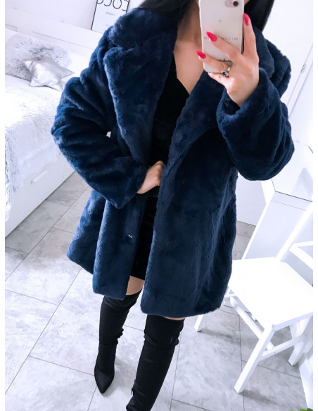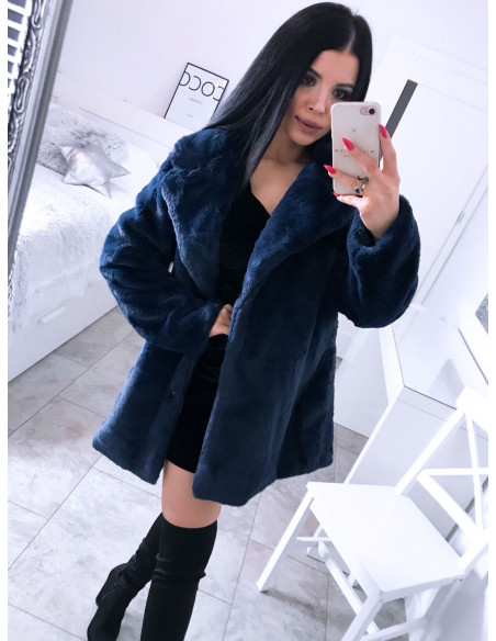 Kobiece futro z kołnierzem TEDDY BEAR SHORT - granat