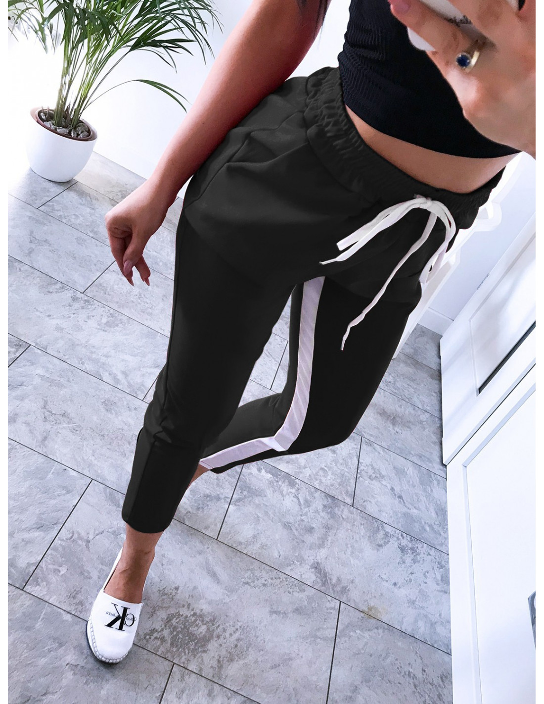 Stylowe spodnie magmac SALWA. Zostały wykonane z miękkiego, przyjemnego w dotyku materiału, w którego skład wchodzi 95% poliestru, oraz 5% elastanu. Sportowy fason jest bardzo pożądany w tym sezonie! Spodnie są wykonane z nie gniecącego się materiału, więc nie musisz się przejmować prasowaniem. Są elastyczne, naciągają się. W pasie posiadają gumę oraz sznurek, dzięki temu dopasujesz je do swojej figury. Idealnie dopasują się do każdej figury. Idealny fason zarówno na codzień jak i wyjścia z koleżankami, zakupy czy rodzinne uroczystości ;) Spodnie dostępne są w jednym rozmiarze. Dokładne wymiary zostały podane w centymetrach abyś miała pewność, że wybierzesz odpowiedni rozmiar dla siebie. Totalny must have w Twojej szafie. Spodnie w kolorze czarnym założysz z pewnością na każdą okazję.