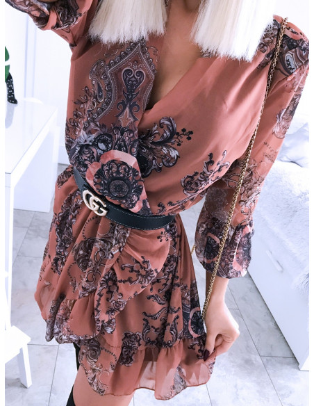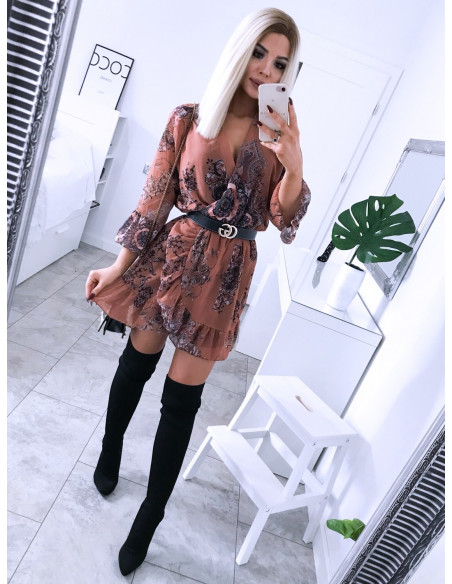 Rozkloszowana sukienka z falbanką ELEONORA - karmel
