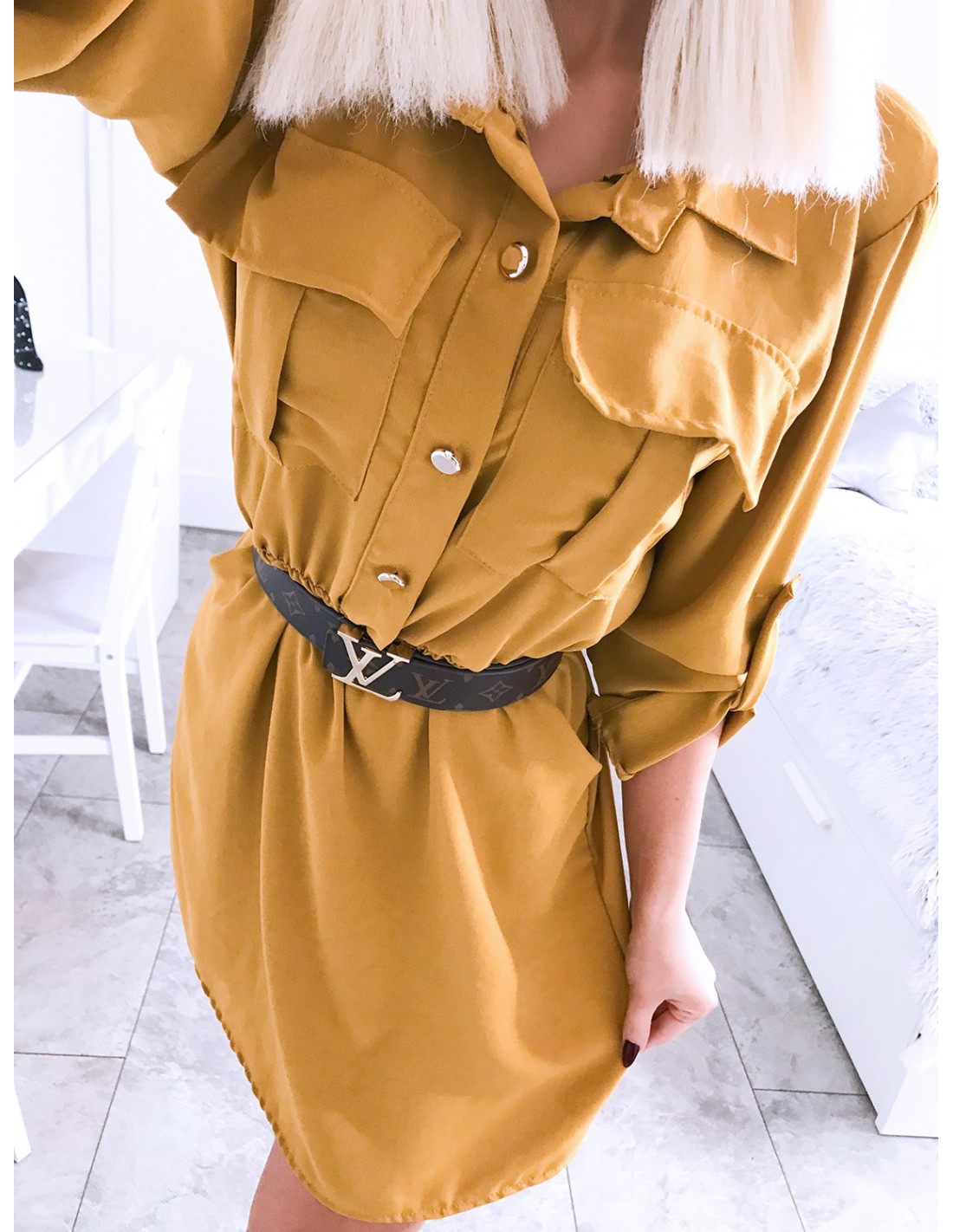 Sukienka mini szmizjerka - KAJLA - musztarda