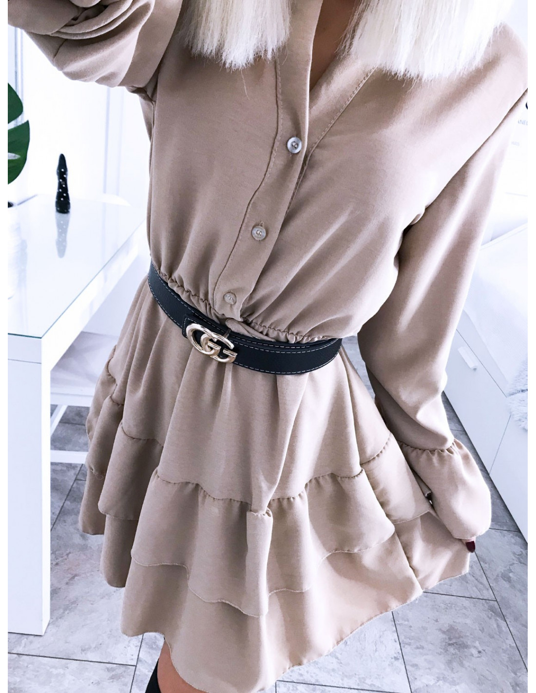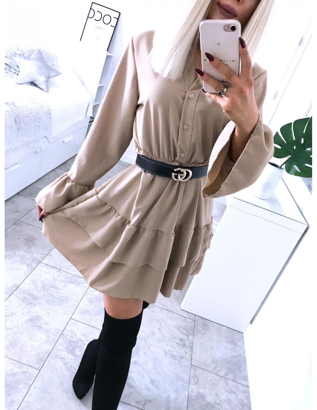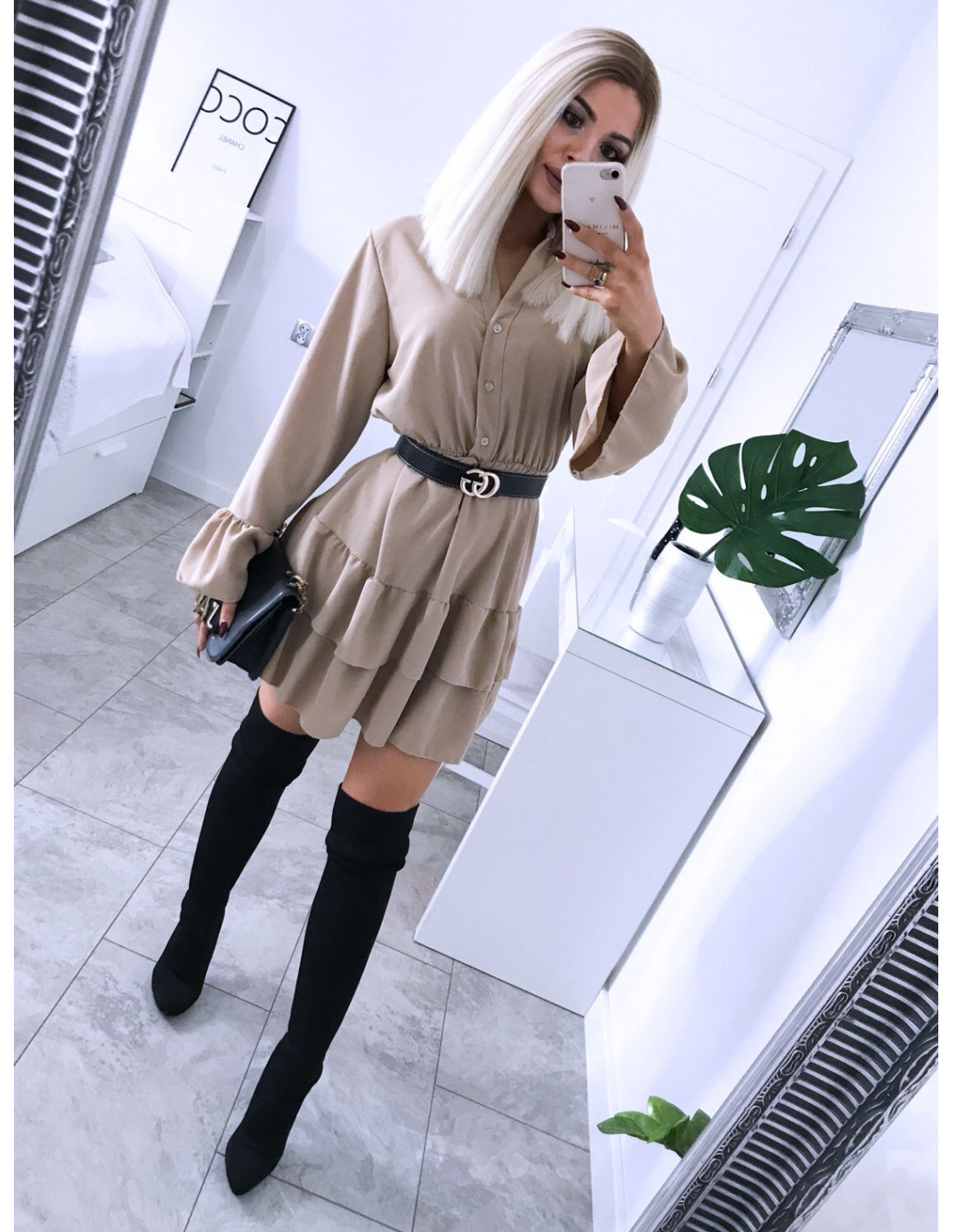 Rozkloszowana sukienka z falbanką KATIE - jasny beż