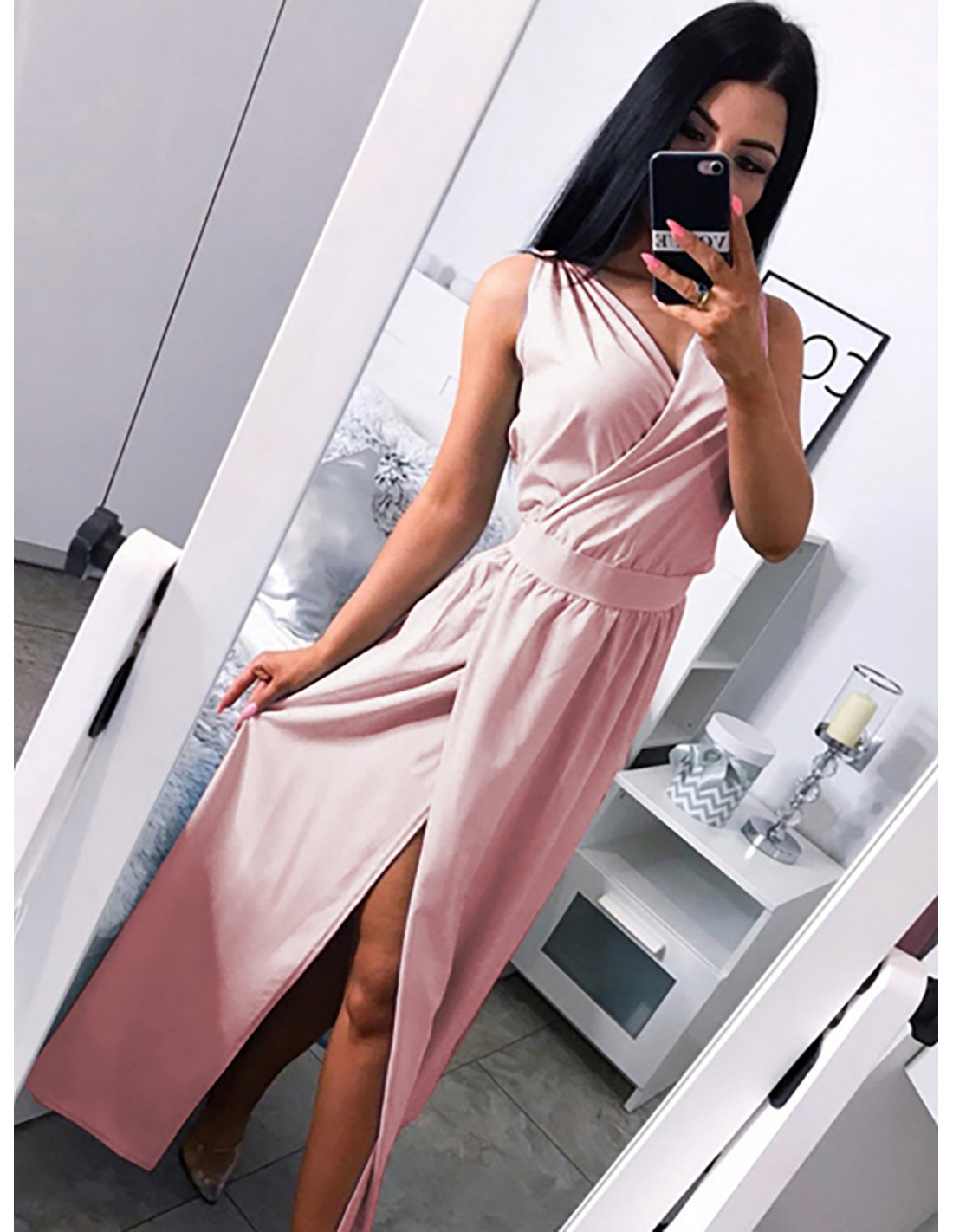 Grecka maxi w kolorze pudrowego różu z pewnością będzie dobrym wyborem na niepowtarzalne okazje.