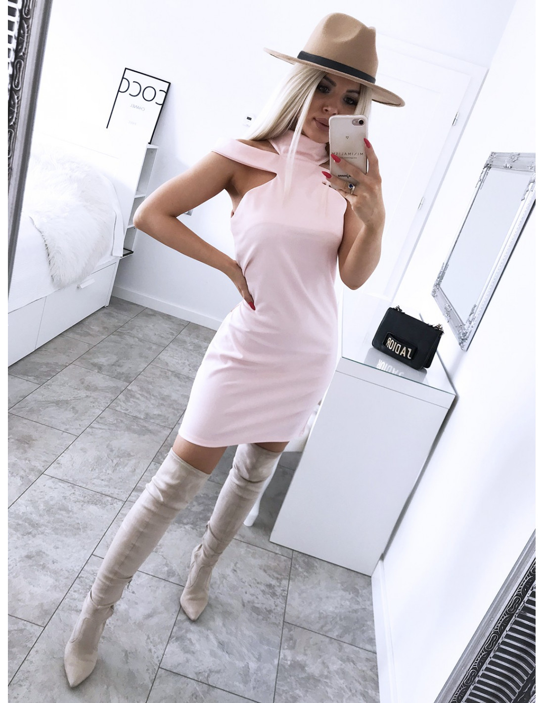 Sukienka z wycięciami na dekolcie ANGELINE - puder