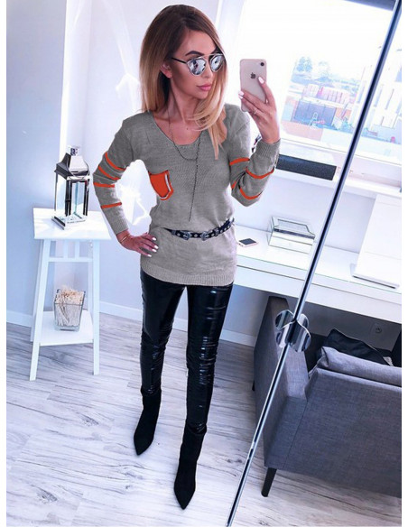 Jesienna stylizacja nie musi wiać nudą! Dzięki sweterkom można ożywić każdą codzienną stylizację. Kontrastujące kolory kieszonek i pasków przykuwają uwagę. Dzięki nim nie pozostaniesz niezauważona. Każdy doceni tak modny look. Natomiast podwijając rękawy, dodasz stylizacji charakteru.Z pewnością przypadnie do gustu paniom kochającym wygodę oraz praktyczność, a przy tym lubiącym zawsze wyglądać stylowo.
